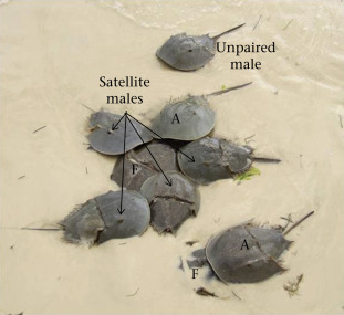 In these crabs, females release pheromones and as a result a male attaches to the female using claws, and releases sperm. While this happens, other males (called satellites) follow the pair and try to also fertilize eggs. Let’s start by doing the following: