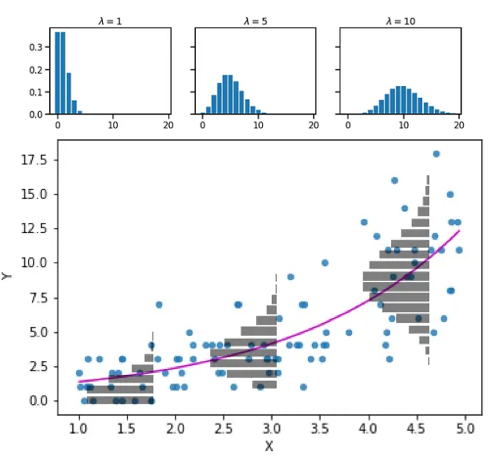This essentially shows that on the Poisson distribution, the variance depends on the predicted (or expected, or mean) value.