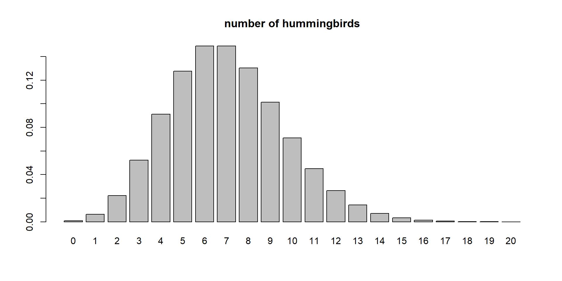 When \(\lambda = 7\) what is the probability of seeing 5 hummingbirds visit a flower?