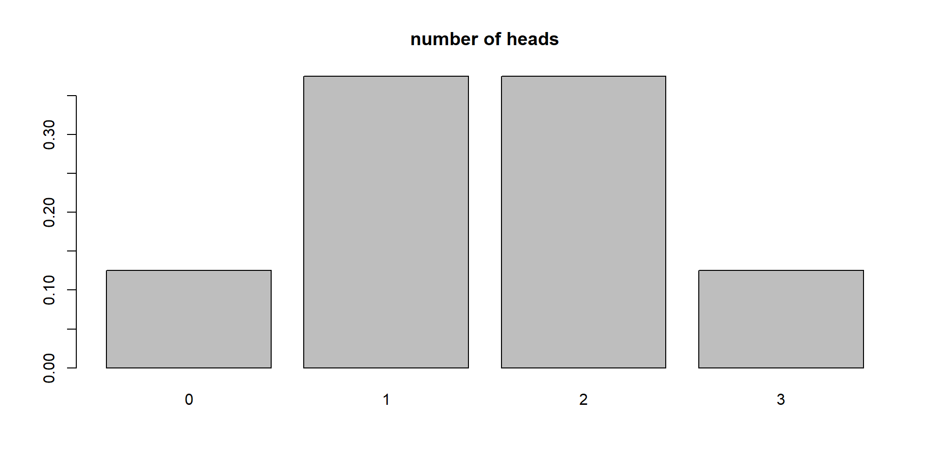 \(P(\text{Number of heads in 3 tosses}= 2 | 0.5) = 3/8\)