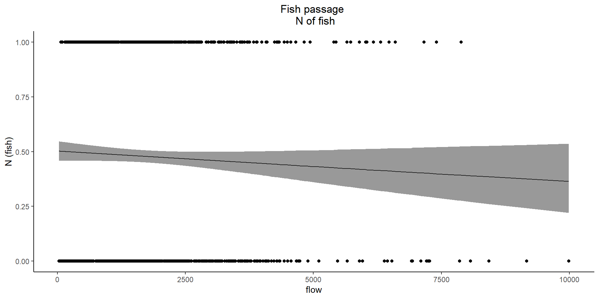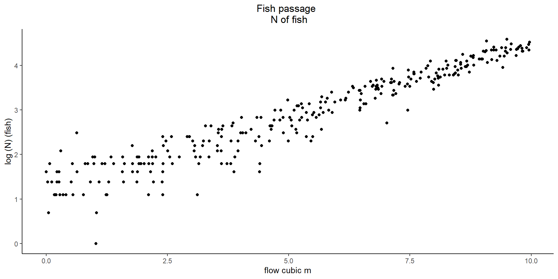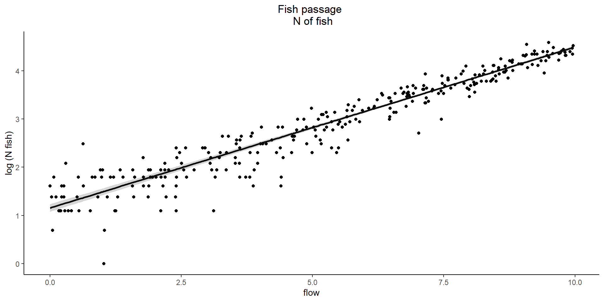 \[ \mu_i = e^{\beta_0 + \beta_1x_i} => \mu_i = e^{\beta_0 + \beta_1flow_i} \]