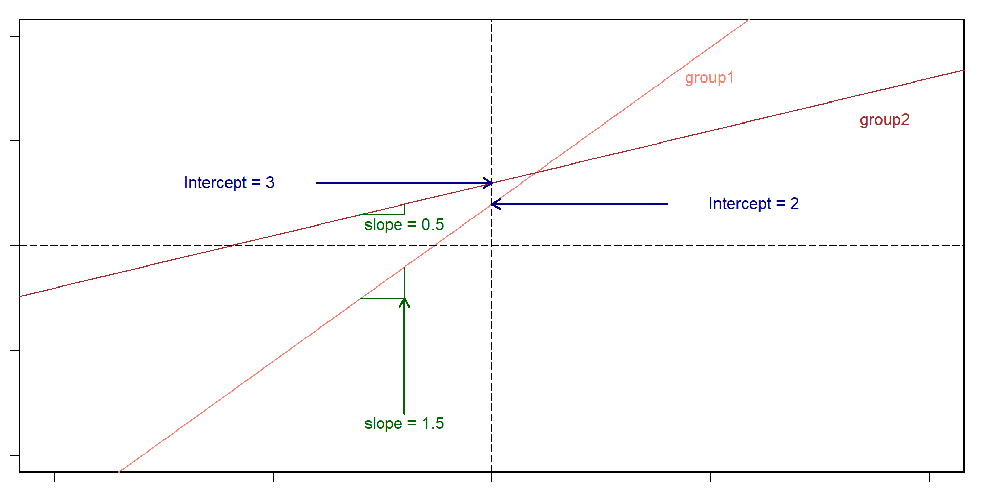\beta_5 & = 0.023 \ \text{Difference in slope between control and dose 2} \\