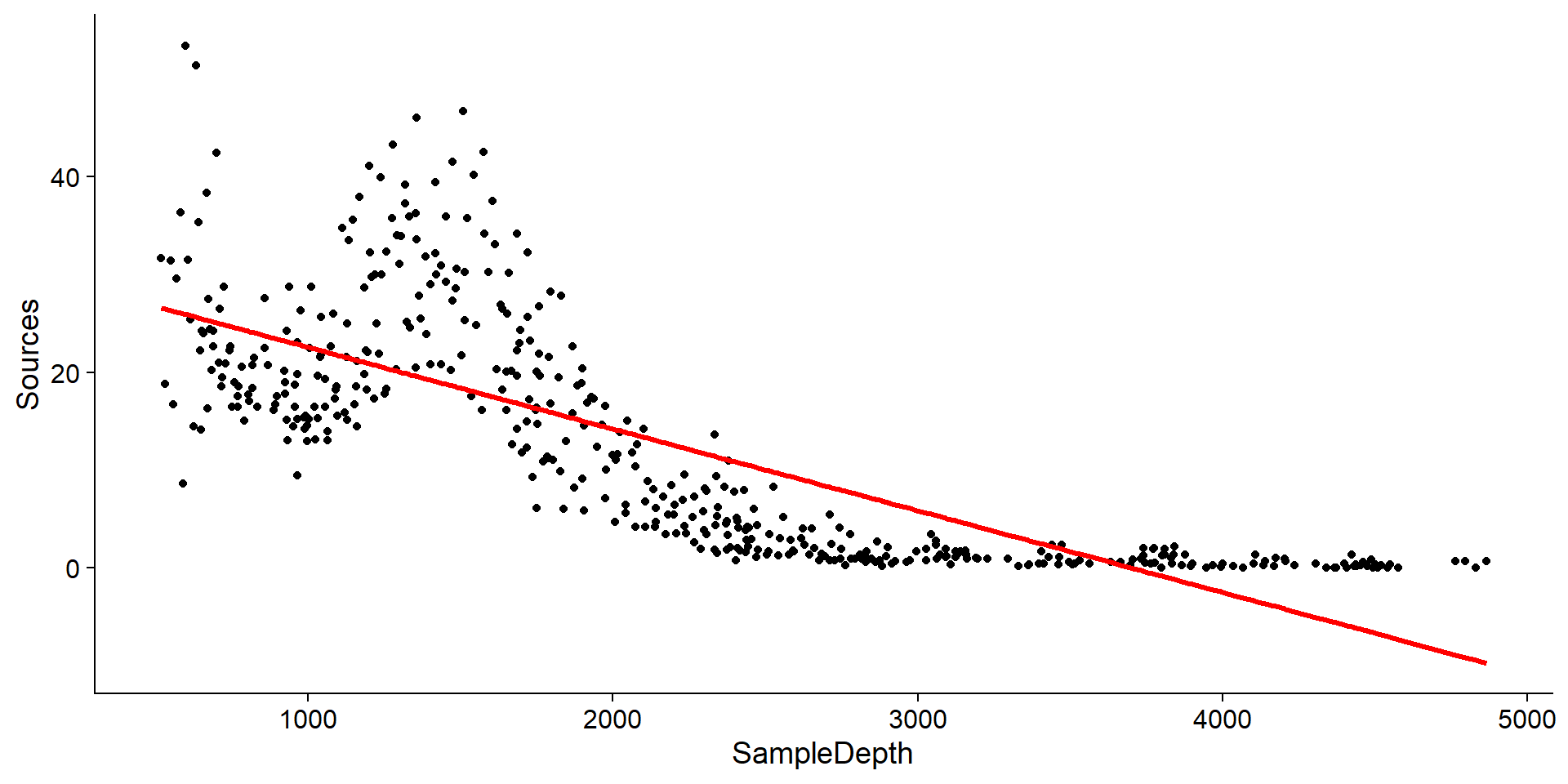 library(mgcv)gam_model <-gam(Sources ~s(SampleDepth), data = isit2)summary(gam_model)