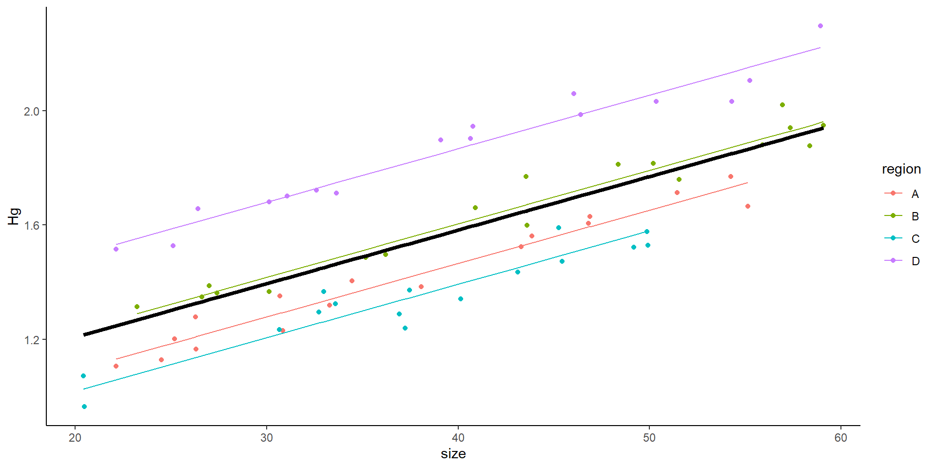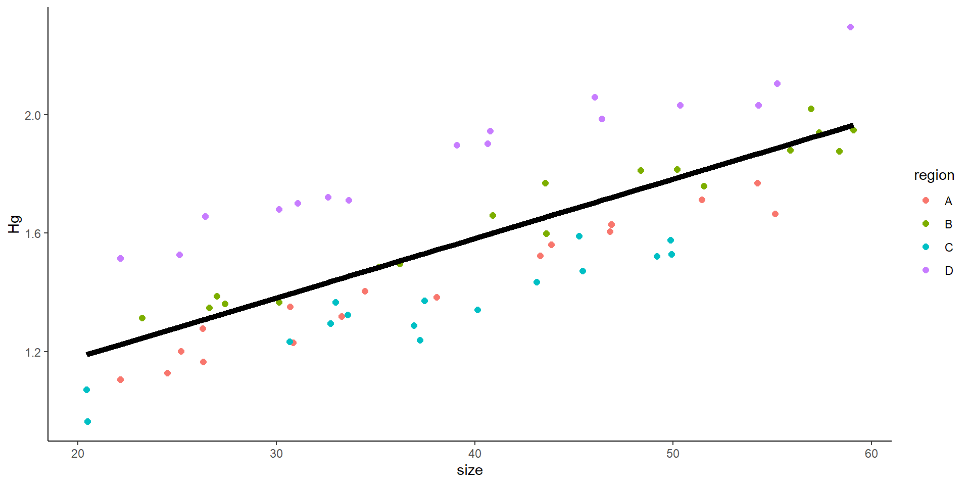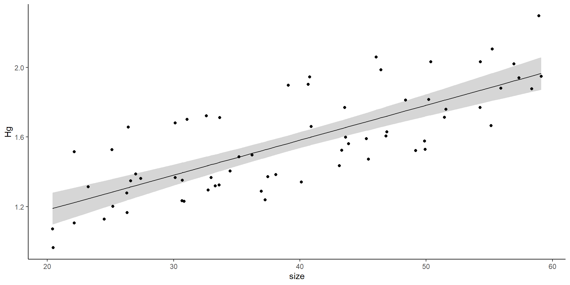 Hg_i \sim \beta_0 + \beta_1size_{i} + \epsilon_i