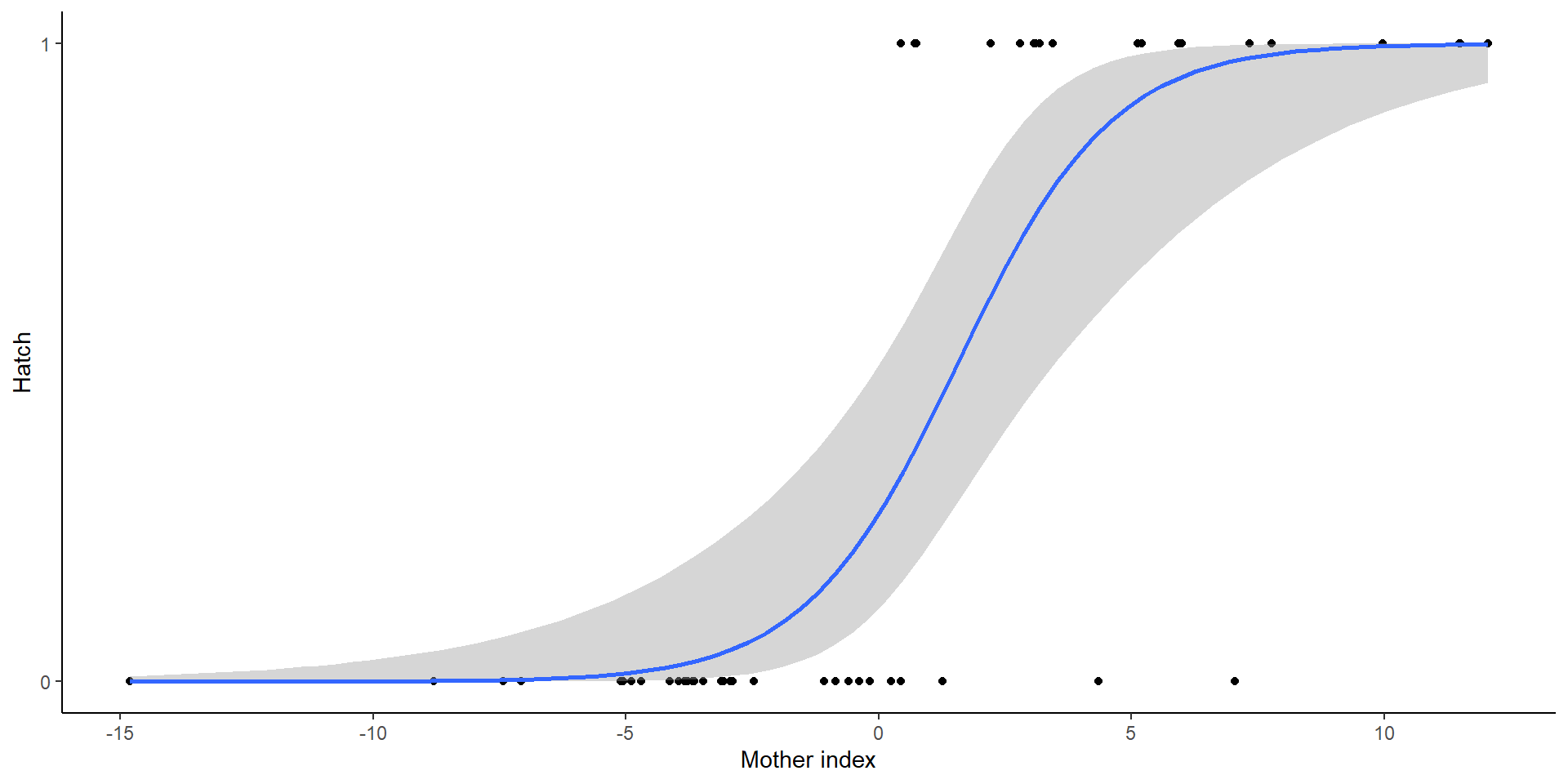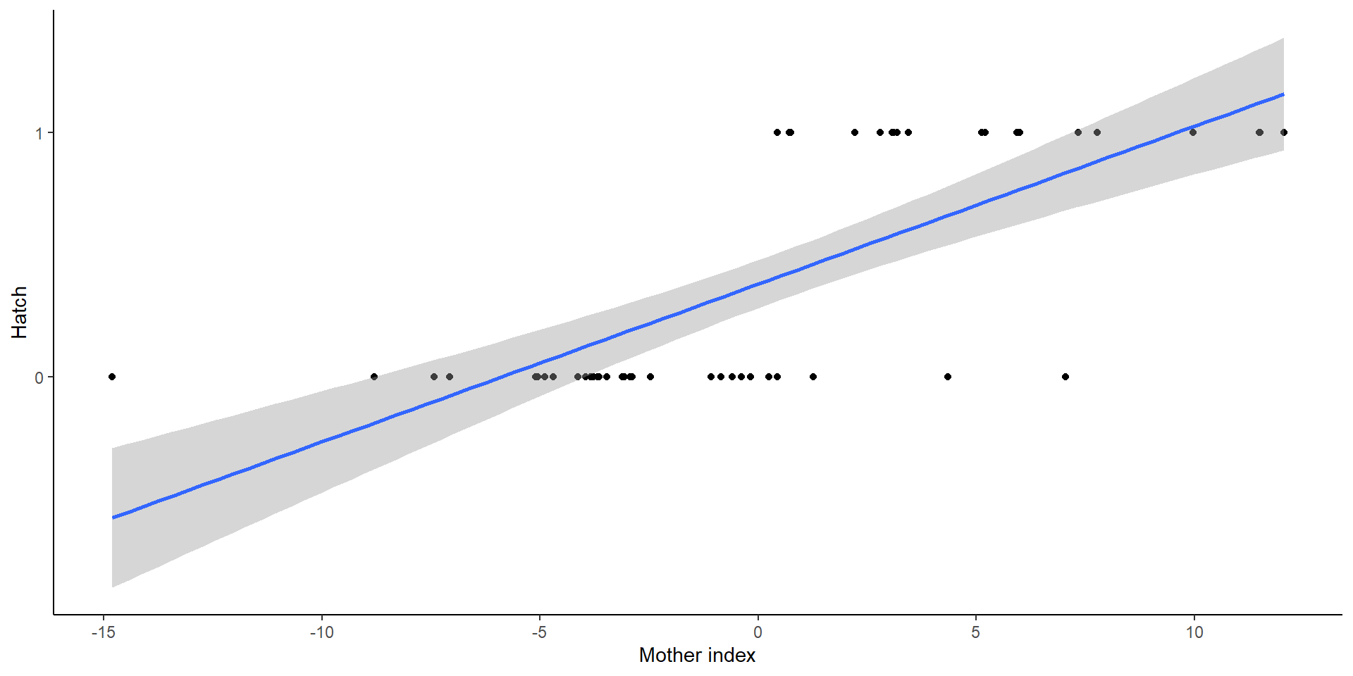 \[ Hg_{ij} \sim \underbrace{(\beta_0 +\underbrace{\gamma_j}_{\text{Random intercept}})}_{intercept} + \underbrace{(\beta_1+\underbrace{\psi_j}_{\text{Random slope}})size_{i}}_{slope} +\underbrace{\epsilon_i}_\text{ind var} \]