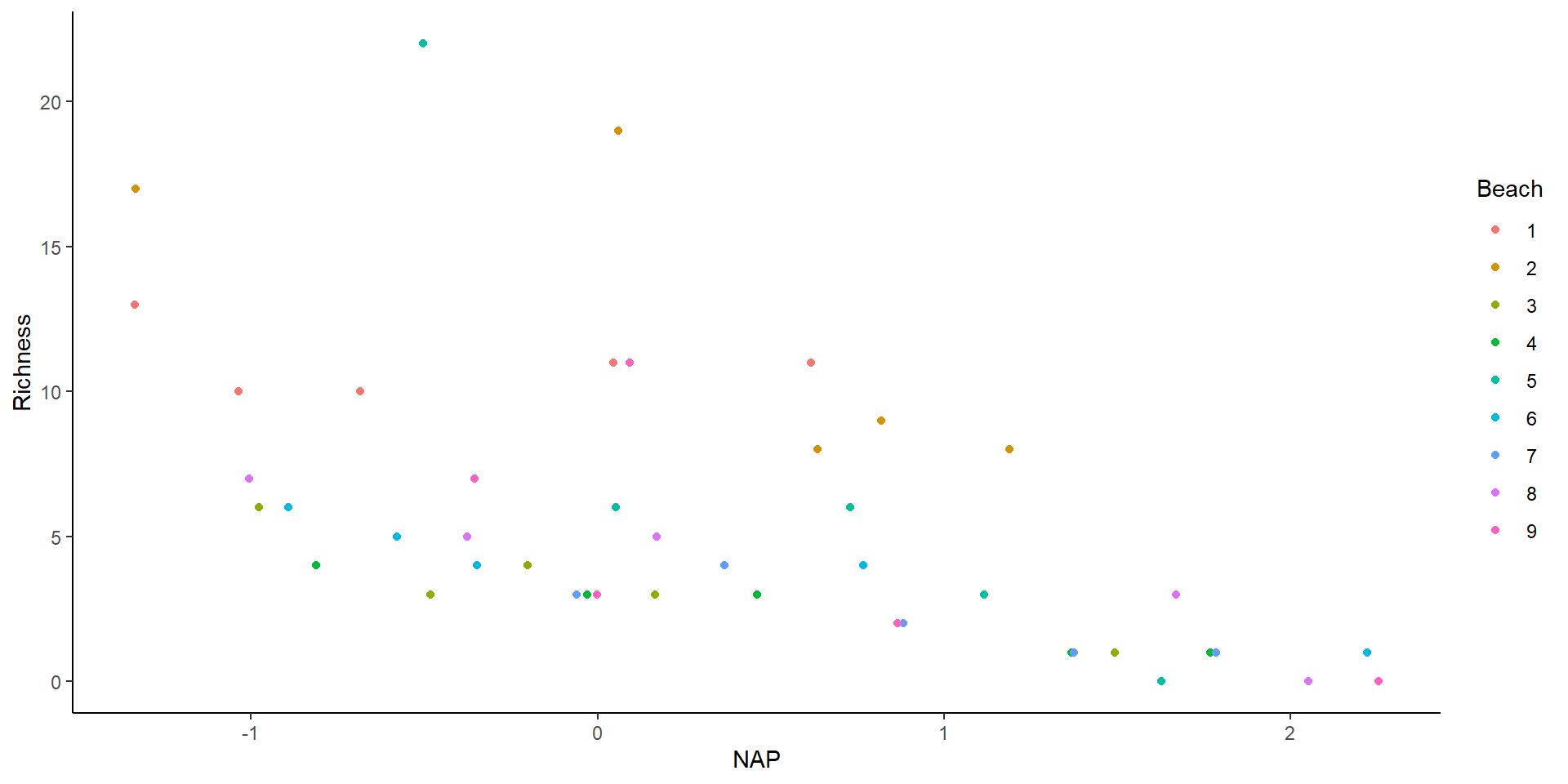 Exploring whether there is a relationship between richness and the two factors: NAP and exposure